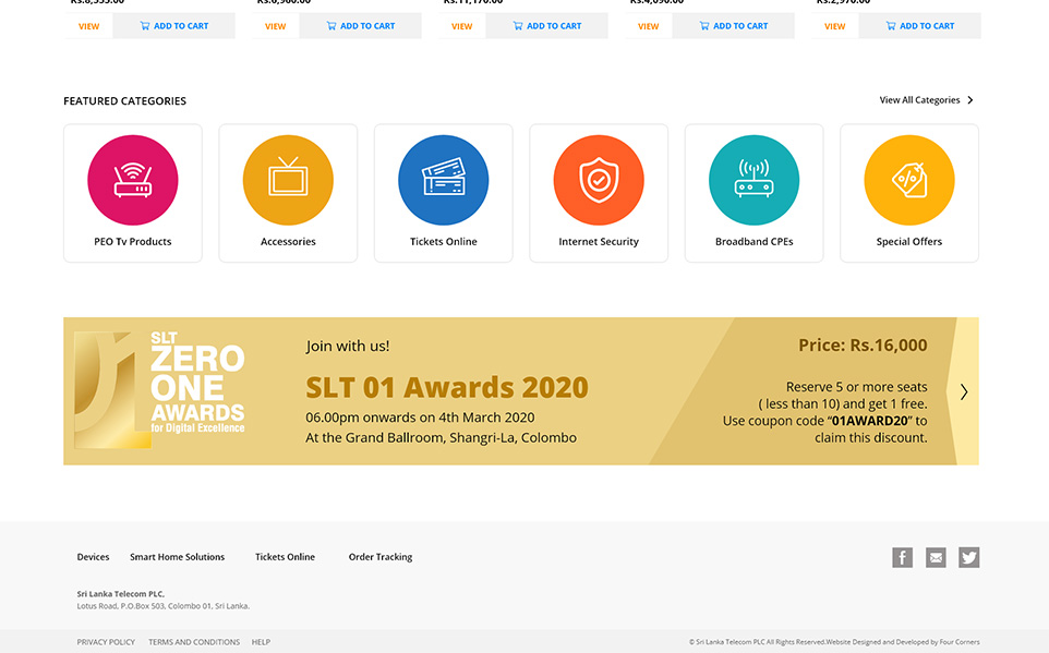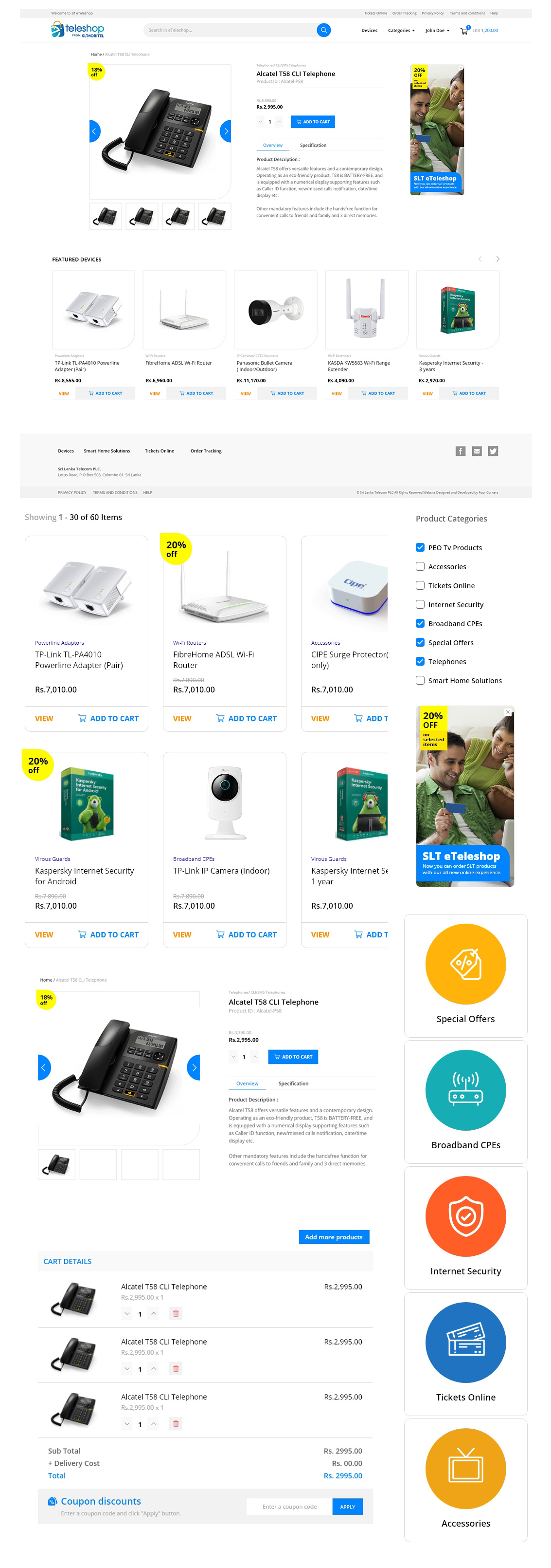 Sri Lanka Telecom PLC anticipated to develop their eCommerce section as a separate website. We designed and developed a mobile optimized, responsive and SEO friendly website with modern UI/ UX practices.